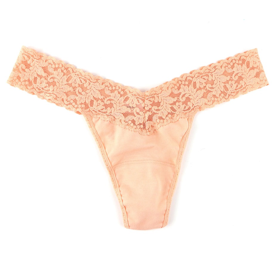 オーガニック コットン ロー ライズ タンガ ウィズ レース (アプリコット グロウ)